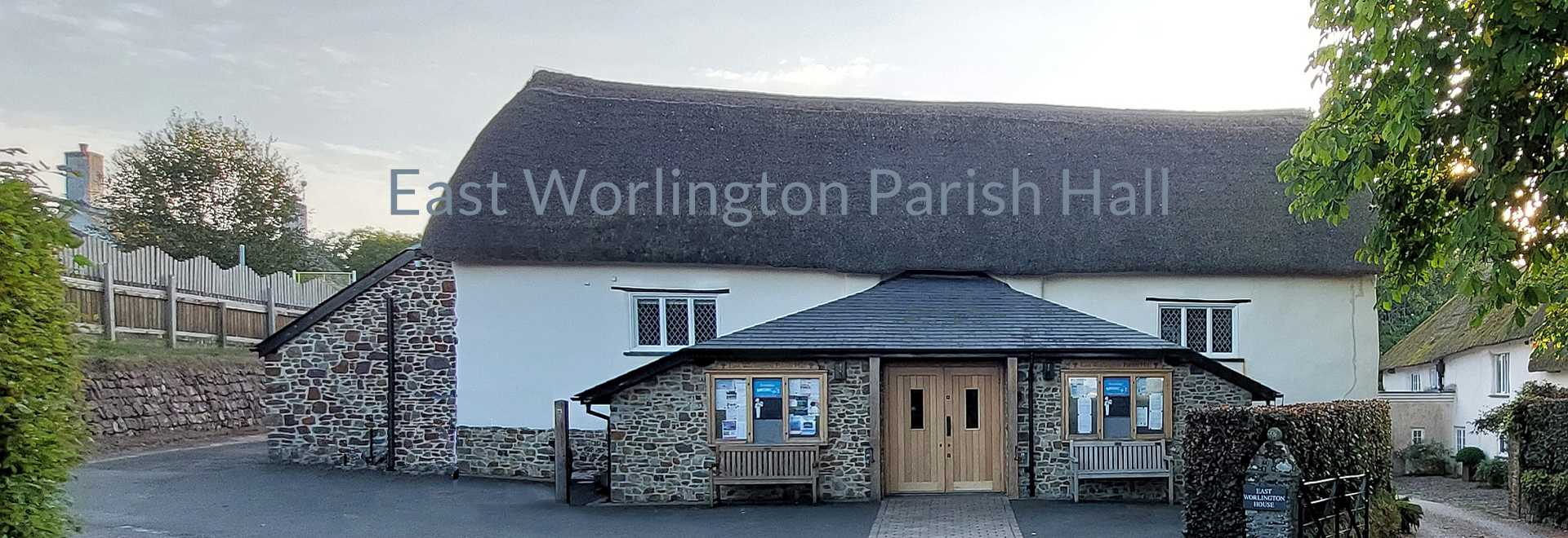 Home Upcoming Events Talk by Richard Folkes OBE 18th April 2026 at 7:00pm, tickets £10. Richard talks about filming aviation scenes for Skyfall and the secret arrival of HM The Queen at the Opening Ceremony of the 2012 London Olympics. Event Calendar Keep up to date with all events and activities held at the Parish Hall on the full calendar of events and bookings. About East Worlington Parish Hall About Us Find out more about the East Worlington Parish Hall: our location, facilities, events, and governance. About our community Details of local services, businesses, community organisations and accomodation. Book the Hall Use our online booking form to make a request to hire the hall or hall equipment such as tables, chairs, crockery and cutlery. Information and Management Worlington Post Our Community Information email about local events, activities or important community notices. Click or tap here to subscribe if you haven’t already done so. Committee Meetings The Parish Hall Management Committee meet in the hall at 7:30PM on the second Wednesday of the month in February, May (AGM), August and November of each year. Anyone is welcome to attend the meetings.