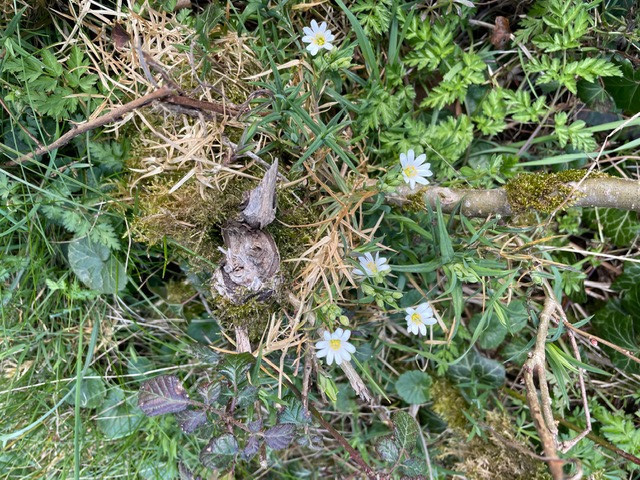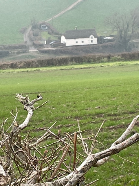 DAY 8Another lovely sunny day and my focus today was to get some shots of the old settlement. Started from home and headed along the road towards Chawleigh ready to cut off across Burridge Moor again. On the way along I was aware of a very well camouflaged flock of fieldfares in the Cobley field to my right. Huge numbers of them who I suspect were amassing in readiness to set off back up North for the Summer. Brave little birds. Across Burridge Moor a flock of snipe surprised both Molly and me as they took off from the ditch on the northern boundary right beside us. Lovely to see them there but still no curlew yet! On down the Cheldon lane again to the footpath turning and round the loop to the settlement taking in the familiar Narwhal wale tree trunk (mentioned on a previous day) and lots of hedgebank places eroded by crossing animals. The settlement is an atmospheric and beautiful place and I hope you can see from the photos the distinctive banks and ditches forming the circular enclosure with it’s sculptural tree roots lining the ditches. What a fabulous spot for those ancient people to settle and with a good imagination it’s easy to visualise how it might have looked all those years ago during the Iron Age. We returned by following the lane back up the hill to Burridge Moor field and then home again. 4.3 miles all round. |