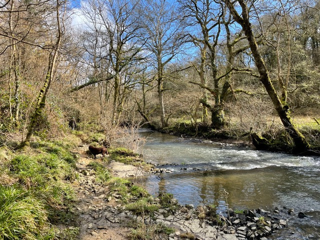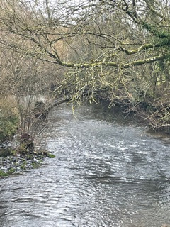 DAY 12Don’t be fooled that the sky was blue today. Mostly a rather lovey grey but jolly blowy again. I did set off to the shelter of the valley down the Horse Hill lane and over the meadows footpath. Mostly the wind was at my back and Molly totally excited by it. I love this little valley on the south side of the hills tucked between the fields. And the River Dart had a new and raging character today. Nice to see the roofs of the valley dwellings nestled cozily and safely under the hill. Friendly dogs for Molly to meet today and also great to see a friendly person and have a chat. Met up with Paul and we looped round the woods and up to the top of Pedley meadow where we hit the wind again. Scuttled back down and around the water meadows heading back to the car. We had to walk twice round the meadow to make those last points up to 4.1 miles today! |