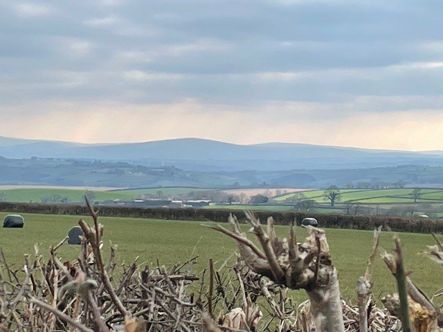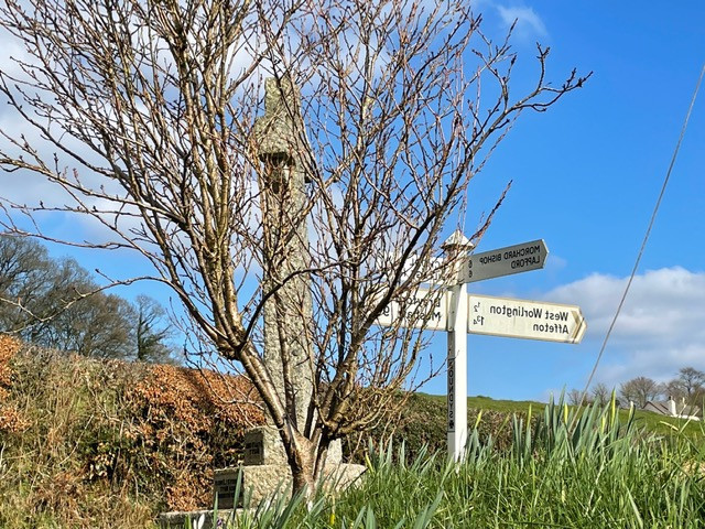 DAY 13It’s half way day today. 13 out of 25 consecutive days I have walked more than 4 miles each day. Some more challenging than others with both glorious sunshine and Spring warmth to blustery squally weather with loads of mud. Not always easy going and somewhat tiring but always a delight. So today we went South of the village again and headed towards Morchard Bishop. The sideways map shows the route we had planned. Parking at Barton Cross and setting off on the New Buildings lane with the aim of sticking to the lanes today but investigating the criss cross footpaths that weave back and forth between there and Morchard Bishop with the plan of exploring them properly when there is not so much surface water and mud. The views on a good day over to Dartmoor would be stunning and the tower of Morchard church stands as a landmark almost all the way round. We passed signs to a number of farms with the name Aish and can only imagine that it is a dialect version of Ash. Does anyone know more of the derivation of this name? It was generally downhill till we reached the point where we turned sharply back off the New Buildings Road back towards Morchard. What goes down in Devon must then go up and it was a long climb back up to the church. The old stone wall supporting the high curved and wooded bank at one point interested me so I snapped it to share with you. We passed glorious cherry blossom and Camelia in a sheltered garden en route and a distinctive field of solar panels. Back at the church we decided that we must try at least one footpath so headed back towards Barton Cross to the side of the school and on to the Two Moors Way. Mud up to our shins!!!!!! And ruts where cattle had trod. Ah well, it wasn’t very far so we walked on and through the plantation to the road. Back to the car and back for very late lunch. 4.9 miles in all . |