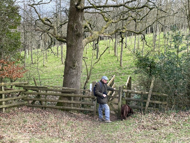 DAY 11The start of the very strong winds so Paul, Molly and I set off together and drove down to the valley to start today. In the shelter of the woods to begin taking in Patrick’ s style. Then back through the village and along the bottom road towards Horse Hill. We turned right down towards Affeton Mill, over the bridge and passed the beautiful water meadows. Up the steep climb to the Castle and, with the wind at our backs, thank goodness, we went along the lane back towards West village. By then we had met the 4 mile target so whilst I went into the church yard to have a look and take some pictures Paul marched quickly back and brought the car along to pick me up at the post box. Somehow we managed to escape the hefty rain storms and did 4.3 miles. Good to meet a friendly local for a little chat in the churchyard! |
