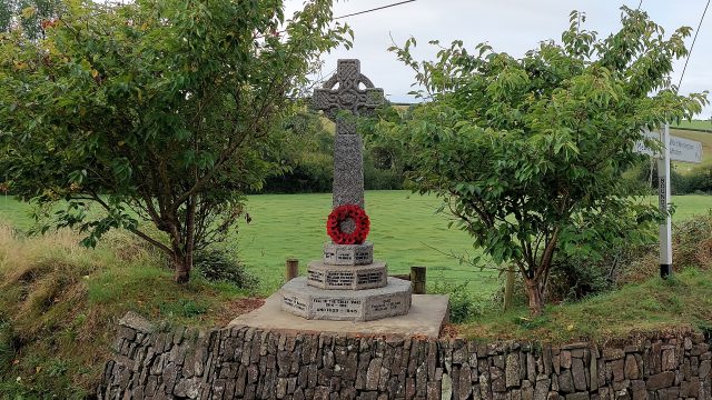 Boundy’s Cross is a War Memorial for the dead of the First and Second World Wars. Probably built in the late-1940s it is a granite stepped octagonal base supporting a tapered rectangular shaft surmounted by a Celtic cross.