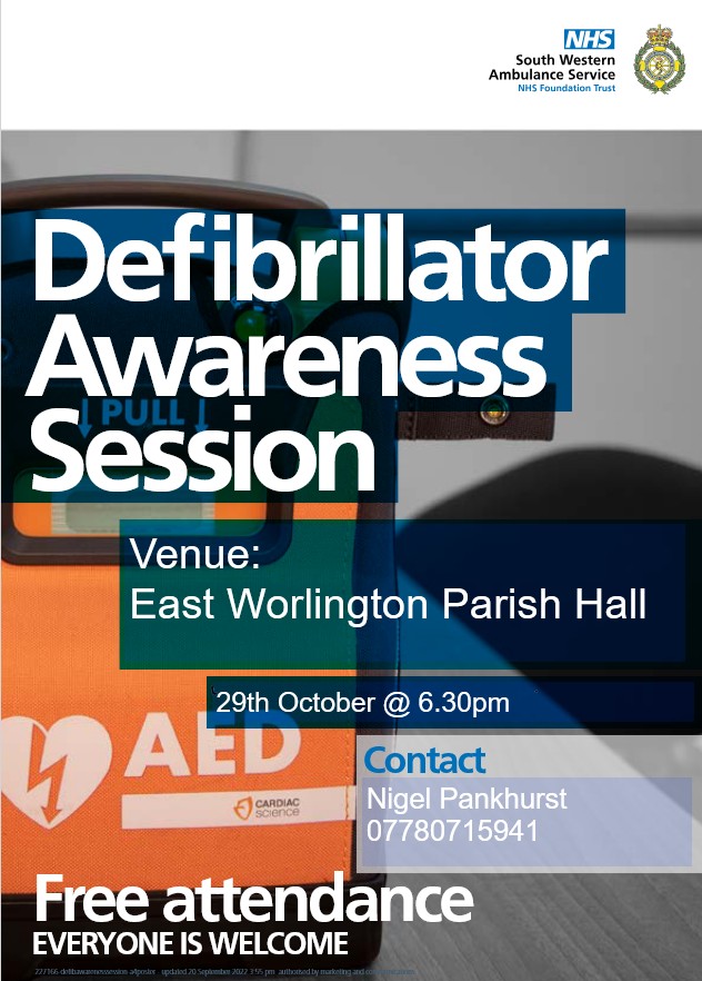 Everyone is welcome. Clear instructions are given on the use of the defibrillator, located outside the Parish Hall, and CPR. The British Heart Foundation states on their website: CPR ‘could be the most important lesson you ever learn’.