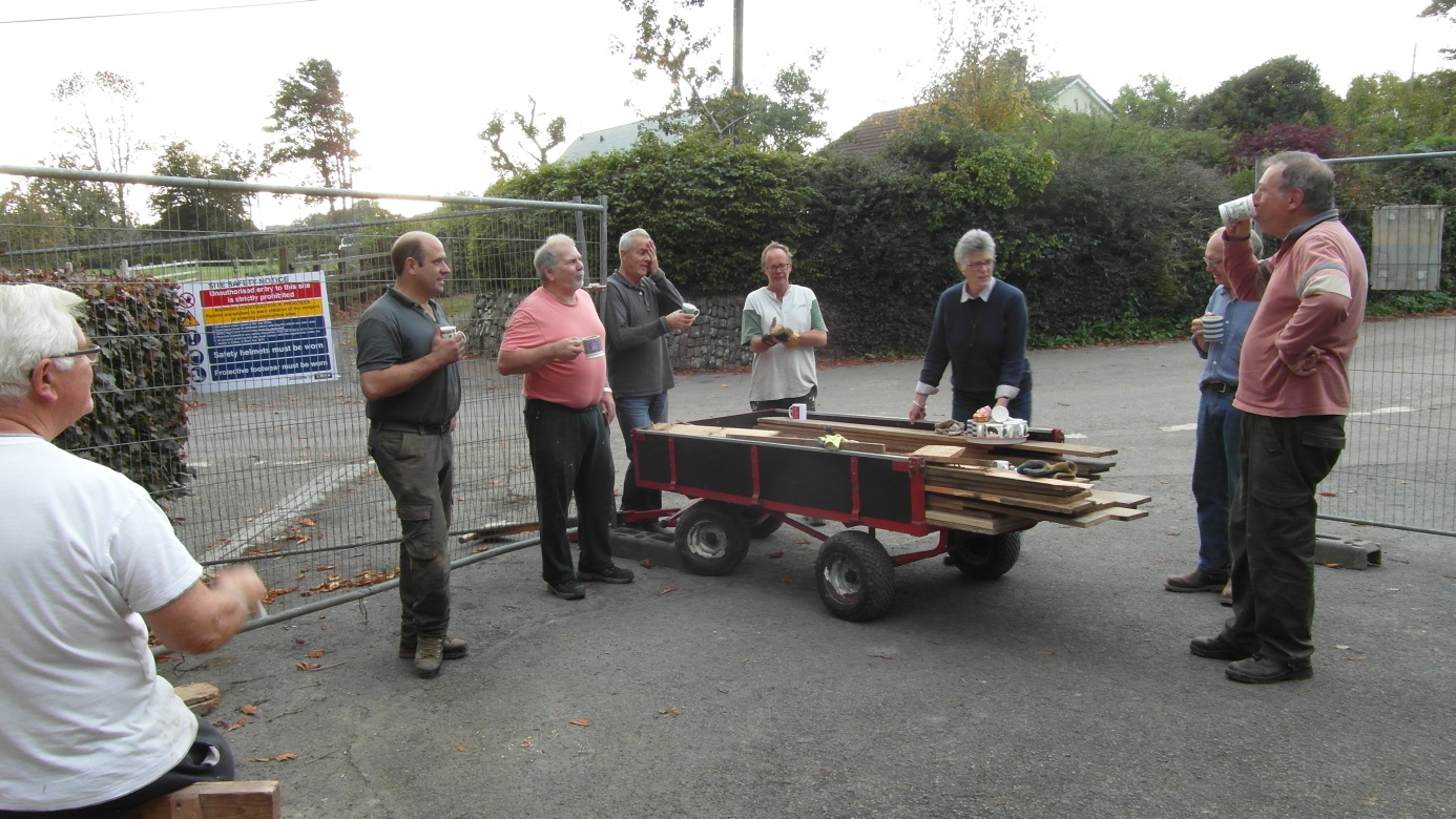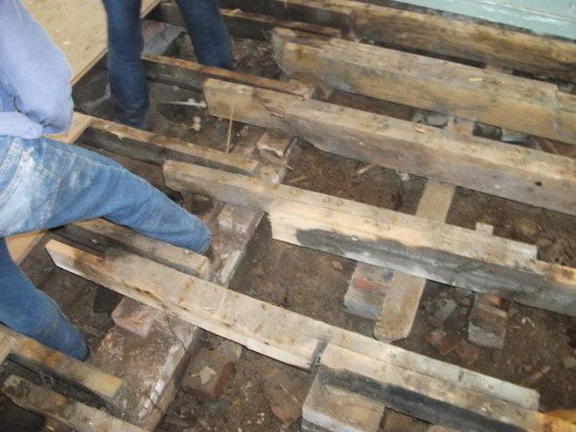 Over a second tea break with chocolate cake the team decided they could finish the floor boards within a couple of hours and decided to keep working to clear the hall that day. They would leave the joists and stub walls for the next day. Work had started around 1:00PM and finished about 6:30PM.