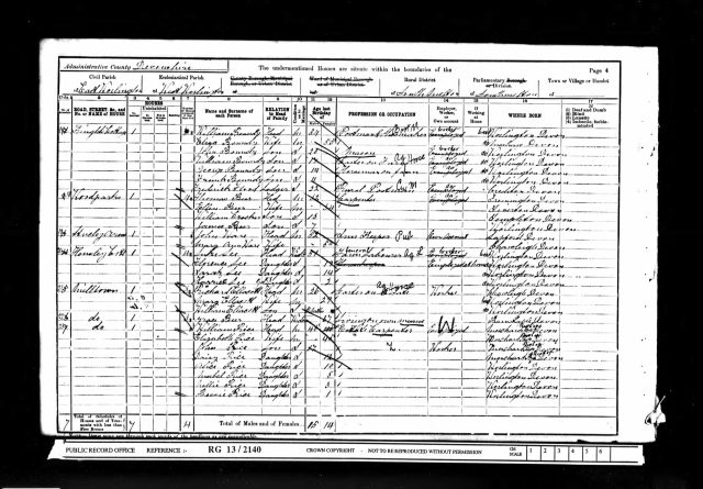 A page from the the 1901 Census which show the residents of Knights CottageWilliam Boundy (54) Postman and Shoemaker – Head Eliza Boundy (53) – Wife John Boundy ( 20) Mason – Son William Boundy (17) Carter on Farm – Som George Boundy (14) Horseman on Farm – Son Frank Boundy 11 – Son Frederick Flood (20) Rural Postman – Lodger |