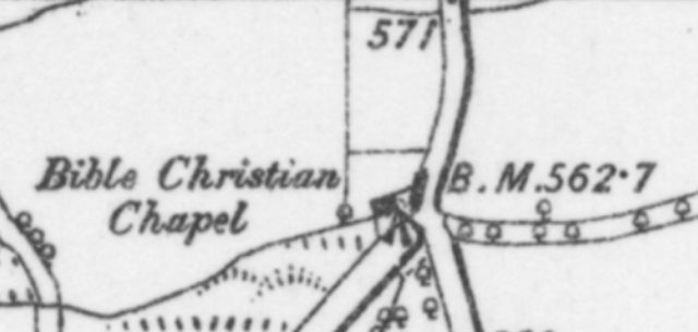 Local research suggests that when building Thornham Chapel the east end was on the site of the old toll house. This fits with the OS 25 inch map shown above which highlights the older Bible Christian chapel and the tollhouse as separate (pink) structures.
