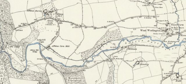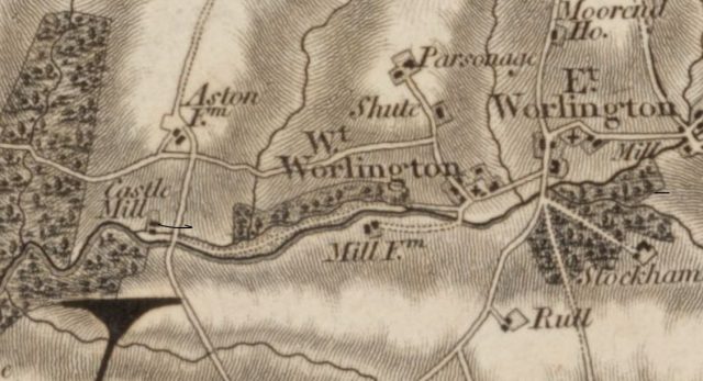 | he Leat This map of 1888 shows the location of Affeton Mill in relation to Affeton Castle and West Worlington. The map shows the position of the Mill Leat including the mere near to West Worlington, where the river water was divert to the Leat in which it flowed to the Mill to drive the water wheel. Once the water had powered the wheel it flowed back into the Little Dart River, presumably by a sluice gate (which was the most common method used for this function) but there is no empirical evidence that confirms Affeton Mill has a sluice gate mechanism) |